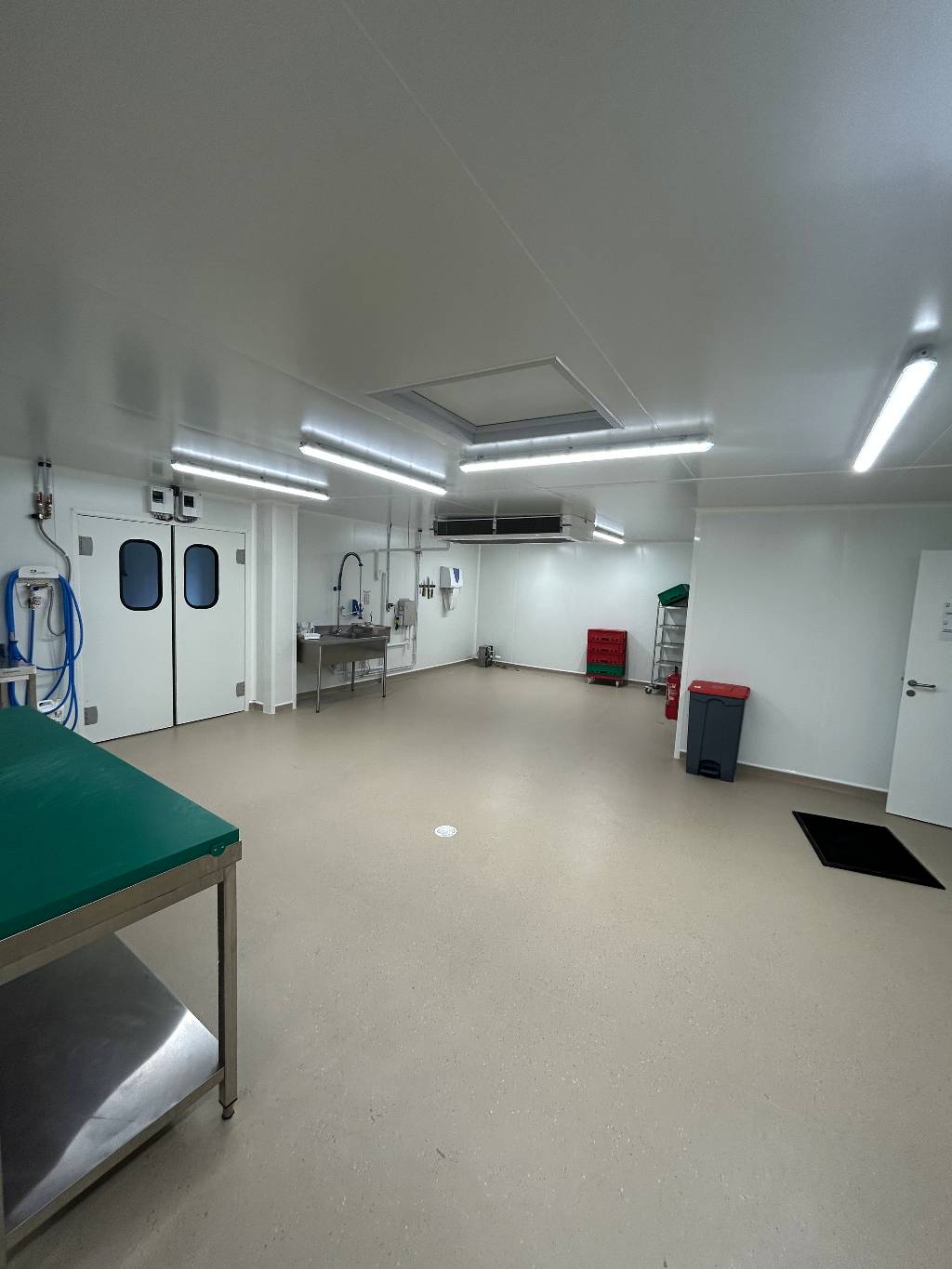 Nos équipes ont assuré la pose complète de l’électricité générale éclairage l’éclairage LED professionnel du laboratoire, de la laiterie, des zones de préparation, du quai et du stockage. Nous avons également installé l’éclairage extérieur, la ventilation mécanique contrôlée (VMC), le système d’alarme incendie, les blocs de secours, la baie informatique, ainsi que le portail automatisé pour sécuriser le site.
