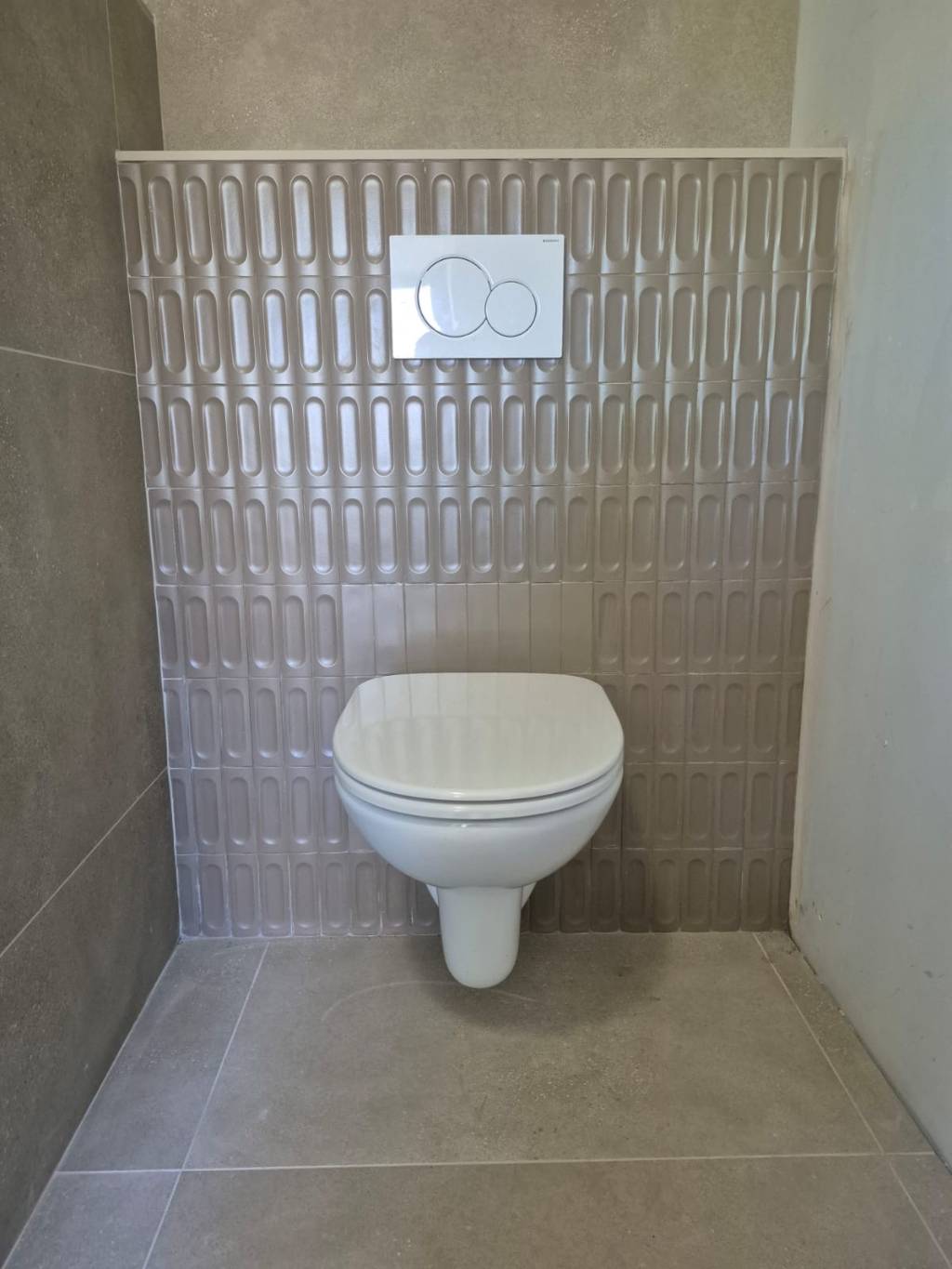Le WC suspendu a été installé sur bâti-support encastré, permettant un gain de place, une meilleure hygiène et une finition esthétique soignée. Les réseaux d’évacuation et d’alimentation ont été repris afin de garantir une installation fiable et durable.